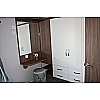 The freestanding furniture in the Avonmore (38 x 12 2 bed) makes this home extra special. With a comfy sofa and two bucket chairs which includes scatter cushions, you get the freedom to move the furniture around to suit your own lifestyle needs. All other models come with spacious wrap-around seating. There is also a feature fireplace, complete with shelving and cupboards, so lots of places to hide away all those holiday purchases, and with pendant lighting in the lounge and dining area this home feels finished to a very high standard. The kitchen is U-shaped with a walnut and cream colour scheme. The layout gives a sense of separation from the lounge but the floating overhead unit still means you can keep an eye on the children while you are cooking dinner. Lots of added extras are included, such as a microwave, fridge-freezer, extractor hood and splashback, making this a superb value for money holiday home. All in all, the Avonmore ticks the boxes for modern family living, with lots of extra features, making it the perfect home for those people looking to upgrade to something special. The master bedroom is spacious and absolutely stacked with wardrobes, cupboards and shelves. You also have bedside lights and an en-suite WC, so this is the one room where you can close the door to escape and relax in your own peaceful sanctuary. The twin room also has masses of storage, which is unique at this price point, along with a master shower room to suit all your family’s needs.