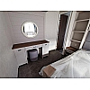 With its cashmere coloured furnishings and classic walnut fixtures, the Sheraton exudes country house warmth at every turn - and those with a taste for comfortable and luxurious space will feel right at home in the super-sized 42 x 14 Sheraton Elite. The fully equipped L-shaped kitchen boasts an integrated oven, microwave, fridge-freezer and a designer tap - giving you all you need for your culinary adventures. Got a larger than average plot? The 42 x 14 Sheraton Elite - features all the benefits of the standard model plus a bath, a Velux® skylight in the kitchen, bigger sofas and a footstool, and a larger walk in wardrobe.