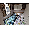 The Biarritz is an elegant, roomy and well-equipped holiday home that's an ideal choice for families. Luxury details enhance the hardwearing interior, with a distinctive kitchen design and new soft furnishings scheme creating an inviting feel, and a range of two and three-bedroom layouts enabling you to select the model most suited to your needs. Step inside Biarritz's welcoming interior, where an open-plan lounge and kitchen await with quality fittings and timeless flair. A cloakroom area with upholstered seat, shoe rack and mirror keeps everything tidy, while low energy LED lighting throughout and sumptuous carpet with underlay lend a premium aspect. The lounge models a new 'Butterscotch' soft furnishing scheme for 2020, expertly curated for coordinated, cheerful style and complementing the modern 'Nebraska Oak' woodgrain. The fixed L-shape sofa with fold out occasional bed and freestanding armchair* are ideal for sharing relaxing family time together, made all the more cosy by the framed fireplace with 'Bach' electric fire. The contemporary kitchen includes high-quality appliances, from the Thetford 'Cocina' oven with grill, four-burner gas hob and stainless steel hood, to the full height integrated fridge freezer and microwave. 'Metallic Block' worktops with matching upstands and distinctive cupboard doors in 'Porcelain' reinforce Biarritz's renowned sophistication, and a freestanding dining table with 'Rochelle' chairs** provide an ideal space for entertaining. Biarritz's fresh main bathroom is as practical as it is chic, with a large shower cubicle featuring glass sliding door and thermostatic shower, dual flush WC, extractor fan and LED vanity spotlights, and a convenient WC and sink are located off the master bedroom. Whether you select a two or three-bedroom layout, you'll find Duvalay™ mattress with Crib 5 rated fabric on all beds, as well as handy bedside cabinets and overbed storage. For extra refinement, the master bedroom has a king-size bed^ with lift up storage and a vanity area with mirror and socket. Offering superb thermal performance, Biarritz is equipped with uPVC white windows, lagged underfloor pipes and thorough floor, roof and wall insulation. Inside, a gas water heater keeps everyone comfortable. It is also designed to retain its stand-out exterior looks, with stylish woodgrain textured 'Sandy Beige' aluminium cladding and LED exterior lighting, alongside bonded sandwich exterior wall construction for greater strength, a coated steel pantile roof and a Fusion galvanised chassis (with finish warrantied for ten years). * Except 35' model ** Two additional folding chairs in three-bedroom model ^ 4'6' in three-bedroom model