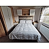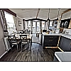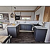 The open-plan layout flows through to the well-equipped kitchen, where you’ll find streamlined soft-close kitchen units in 'Riverstone' and light grey upper doors, as well as 'Torano Marble' laminate worktops with upstands for an on-trend look. The high-quality appliances range from a Thetford 'Cocina' glass fronted oven and grill with four-burner gas hob, to an integrated microwave and A+ rated double door fridge freezer,