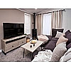 With calming warm furnishings and textures throughout, you can spend your evenings relaxing by the fire on the clever modular sofa or cooking up a storm in the kitchen. The kitchen has been designed as a social space with plenty of seating and worktop space to entertain the family or put your baking skills to the test. The large dining table means you can enjoy holiday meals together or get the board games out for games night. Throughout you’ll see hints of black accents to give the home a boutique, modern feel.