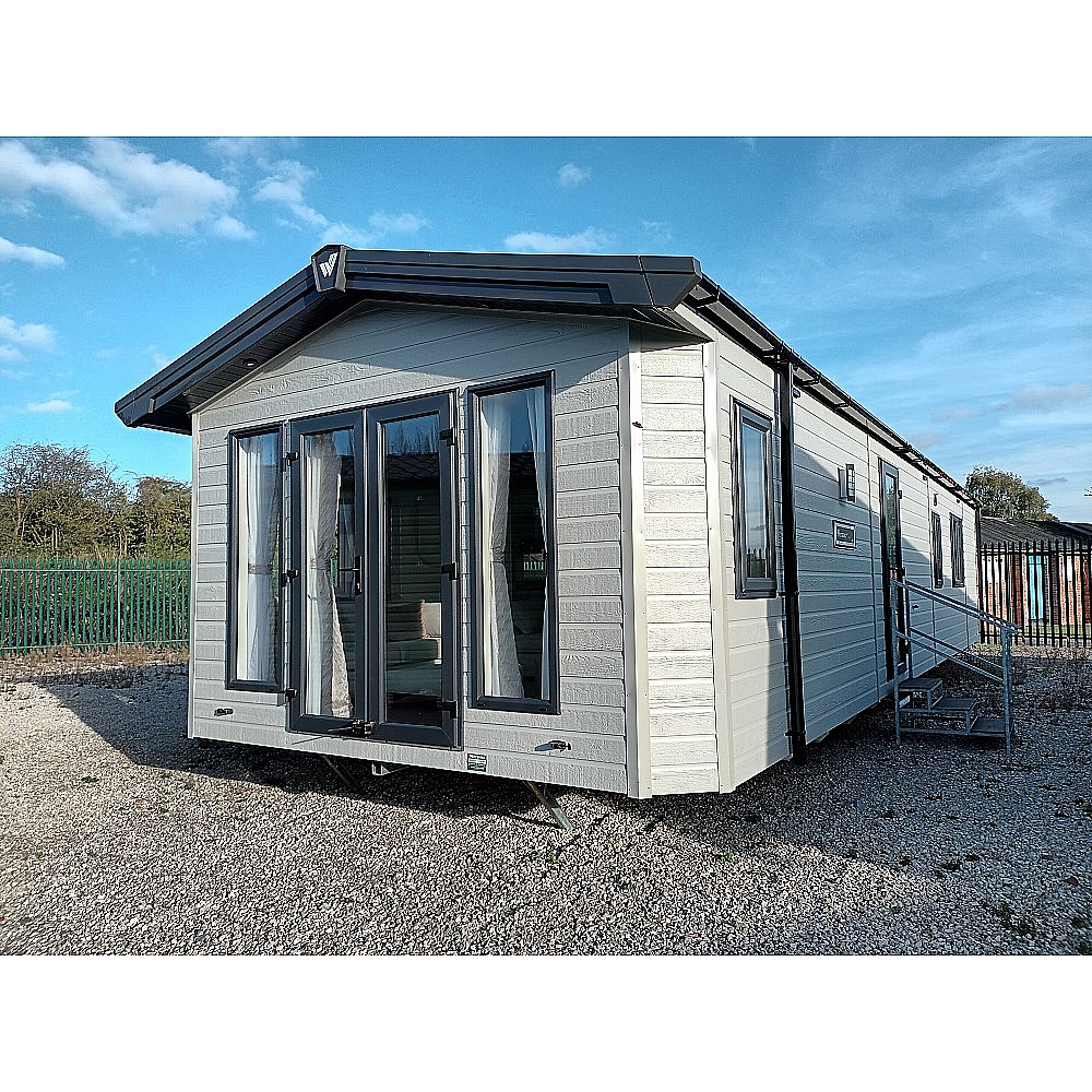 Lodge spec with Mist grey canexel, Graphite Upvc windows & doors, Deluxe Pack