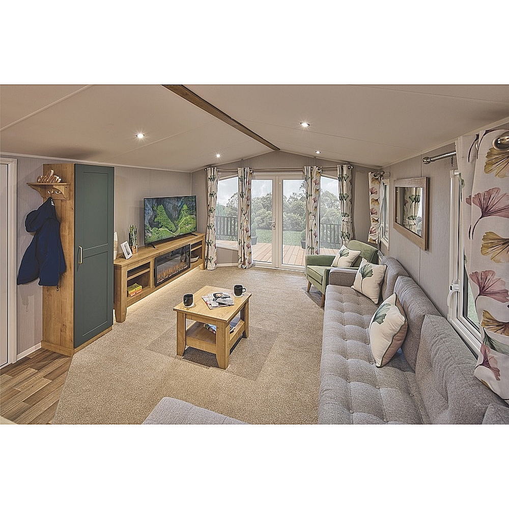 new 2023 model Willerby Sierra MK8 35' x 12' - 2 Bedrooms Location: 5 star award winning Caravan Park in Bamburgh Northumberland. Specification: Double Glazing, Central Heating. Barley White Aluminium Cladding / White uPVC. A fresh, new design with some familiar features still remaining including the familiar Art Deco inspired Front Aspect Windows inviting light into the specification. Entrance/Lobby: Storage cupboard and coat hooks. Lounge: Feature media unit. Fixed design sofa seating with scatter cushions, separate armchair, coffee table. Separate Dining Area: Ideally located beside the kitchen area. Wooden dining table with River Grey legs, 4 coordinating dining chairs with fabric seat pads. Feature drum-shade style pendant light. Shaker-style Kitchen: Botanical green cabinet doors and drawers with gold handles. Carrera stone-effect worktops and white splashback to hob. Integrated microwave and fridge-freezer. Wood plank effect vinyl flooring. Hallway leads through to the family shower room and bedrooms. Family Shower Room: large shower enclosure, dual flush WC, mirrored cabinet above wash basin, additional shelf storage next to WC, white ladder-style towel rail. Statement vinyl flooring. Main Bedroom: King-size bed with lift-up storage, feature buttoned, fabric headboard, fitted cabinets in cream with coordinating handles. Dressing table with LED light, vanity mirror and stool. En-suite WC and wash basin facility with statement vinyl flooring. Twin Bedroom: 2 x single beds with feature buttoned, fabric headboards, bedside cabinet, wardrobe with additional side storage. Dressing space with vanity mirror. Great value family specification - ideal for more holiday getaways. With Manufacturer's Warranty included. Waren Caravan Park details: Ideally located next to Budle Bay near Bamburgh in North Northumberland with sweeping panoramic views of the Cheviots Hills and the spectacular Northumberland coastline with views to Lindisfarne. It's an excellent base to discover the typical Northumbrian villages of Bamburgh, Seahouses, Beadnell, Newton and Craster with a necklace of wild and empty white-sand crescents that are designated a Heritage coast as well as an Area of Outstanding Natural Beauty. The Park facilities include: on-site shop, restaurant/bar, children's play area, heated outdoor splash pool, picnic and BBQ area. Close to the Scottish Borders - a great base to explore and discover. Holiday Park Season: March until first week in January. Find out more: Call 0191 378 6615 / 0191 378 0146 - email Sierra on Park - Special Price