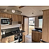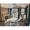 The Debonair 11 interior is an epitome of country home living. The lounge has freestanding 2 and 3 seater settees with homely fabrics and contrasting stag and bolster cushions. The lounge also features a log-burner style electric fire in a traditional mantelpiece setting. The farmhouse style dining table is complemented by matching chairs which continue the country theme. The Debonair 11 has a fully fitted farmhouse- style kitchen benefiting from an integrated oven and 5 ring gas hob, electric cooker hood and integrated fridge freezer. The kitchen units are a mixture of standard and glass fronted doors for an added touch of elegance. The Debonair 11 master bedroom continues the traditional styling with beautiful built in furniture and kingsize bed. Light floods in to the bedroom through the large three- quarter height window and the bedroom is completed with ensuite comprising wash basin and WC. The second bedroom in the Debonair 11 features two single beds and a built in wardrobe with overbed storage. There is also a 3 bedroom model available giving extra sleeping options. The main shower room has a large shower cubicle, stylish countertop wash basin with storage cabinet below, WC and external extractor fan. The ensuite to the master bedroom has a wash basin with mirror above and WC. Available to view at our Wetherby Depot - Yorkshire Holiday Homes, Unit 154, Avenue A, Thorp Arch Estate, Wetherby LS23 7BJ.