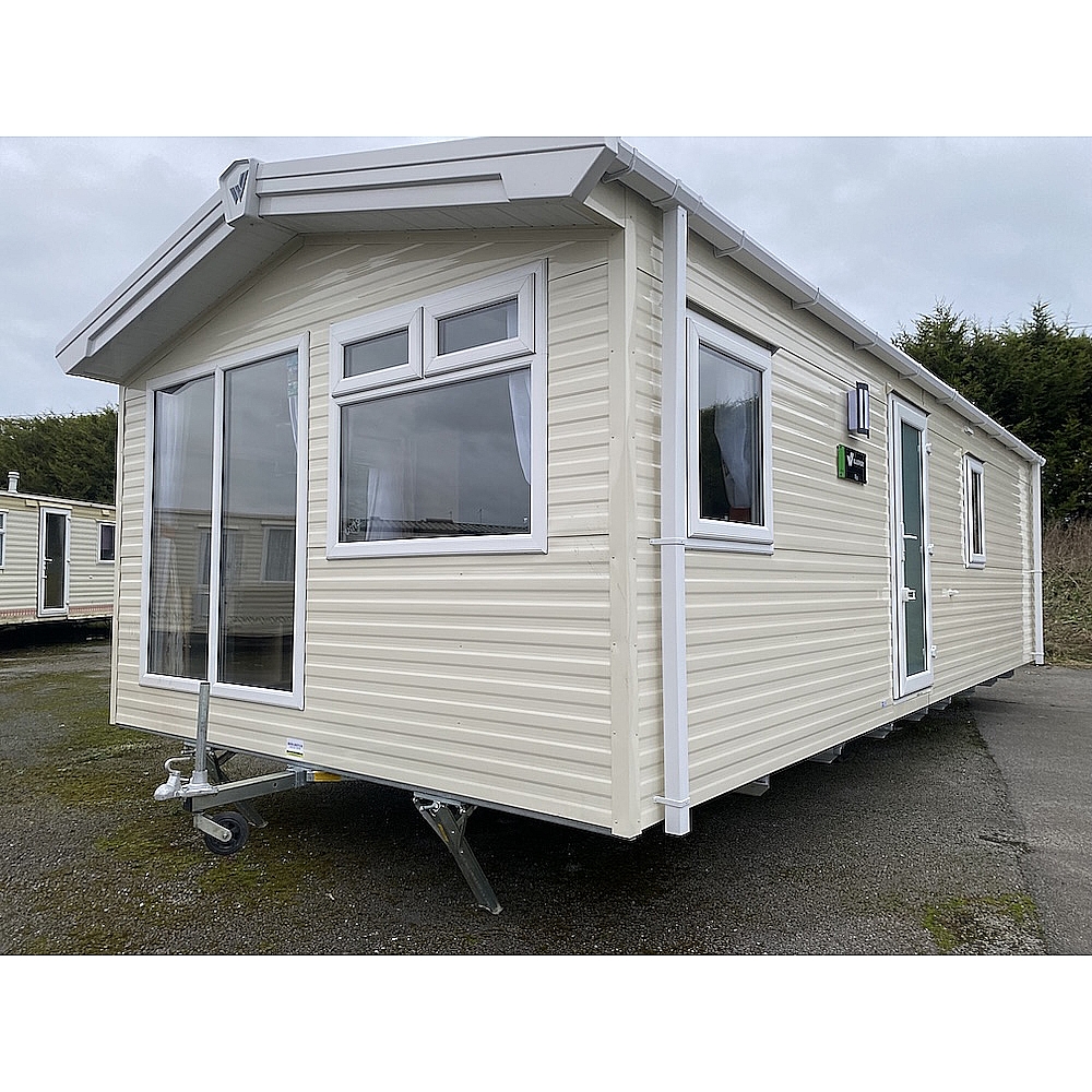 The distinctive layout of the Rio allows you to step straight into the heart of the home - kitchen, with the kettle just an arms reach away. With a cup of tea brewing, it's time to drop those bags and head straight to the comfy L-shaped sofa in the lounge where your vacation truly begins. Cleverly designed storage features heavily throughout the Rio, from the underseat storage in the lounge and smart stowing space beneath the dinette bench, to the large cupboard in the hallway and generous built-in wardrobes in the bedrooms. You will never be short of space so you can bring all that you need and more. Although the Rio is pitched as one of our latest entry-level holiday homes, it certainly doesn't lack style! Its bold interior design scheme features fun and vibrant pops of colour and pattern throughout over a contemporary and grown-up base palette, making the home feel much more expensive than it is.Located by the entrance way, the kitchen is perfectly placed to make the most out of the space in the Rio. Enter your holiday home and find yourself at an arm reach away from popping the kettle on as you find yourself the heart of the home. Just across from the kitchen you find the dinette, perfect for family meals or a fun games night together. Don't worry, you won't miss out on the fun in the lounge as the open plan layout of the Rio means you can get involved whether you're at the table or making a brew in the kitchen. Even in the kitchen/diner the Rio doesn't lack style. Featuring soft grey cabinets, complimented by natural oak effect worktops and a black splash back, finished with feature panelling at the dinette.The Rio master bedroom features plenty of cleverly designed storage space. The wardrobe gives you lots of space for your holiday essentials without losing any space in your bedroom, there's also two bedside tables and overhead storage. The Rio has everything you need for your next getaway, with a king-sized bed*, ensuite WC**, storage space and a mirrored dressing table to get ready for the day. What more could you want?