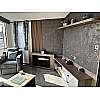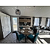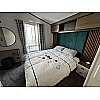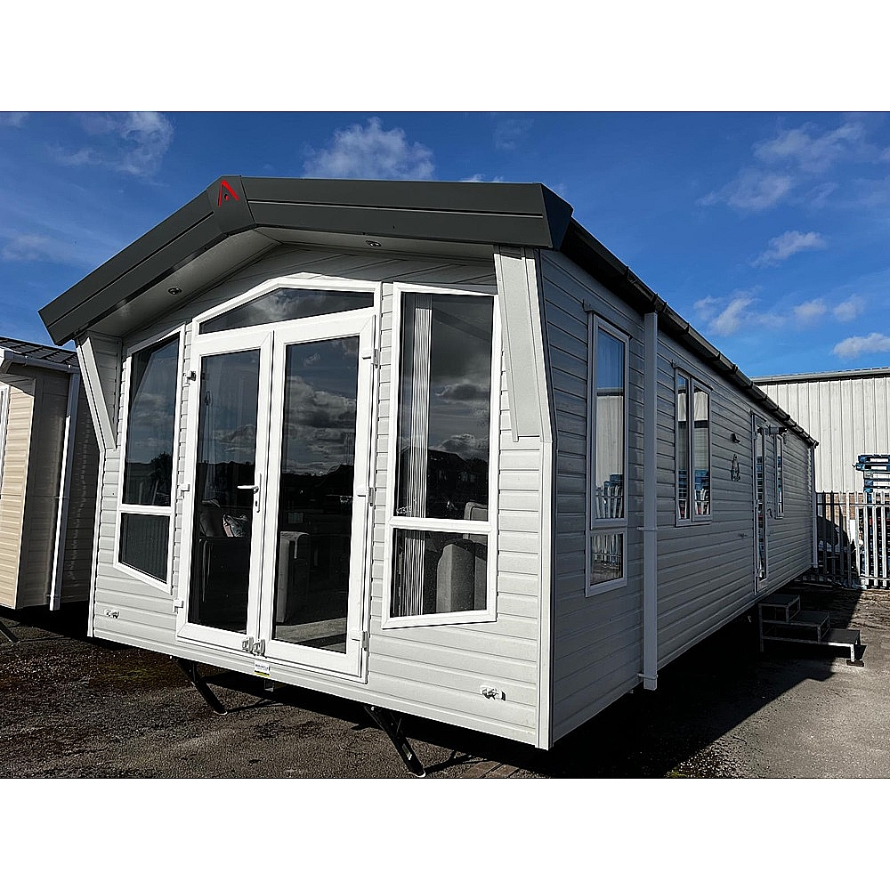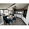 The Atlas Status offers luxury open-plan living space, with vertical blinds at the front offering shade, the lounge features a large sofa and 2 swivel chairs in sumptuous velvet fabric with scatter cushions as standard. The fitted furniture and coffee table are in dark oak and the electric fire has a large mirror above. The dining area features a large circular dining table and 4 chairs. Ready to view now at our Bridlington Showground.