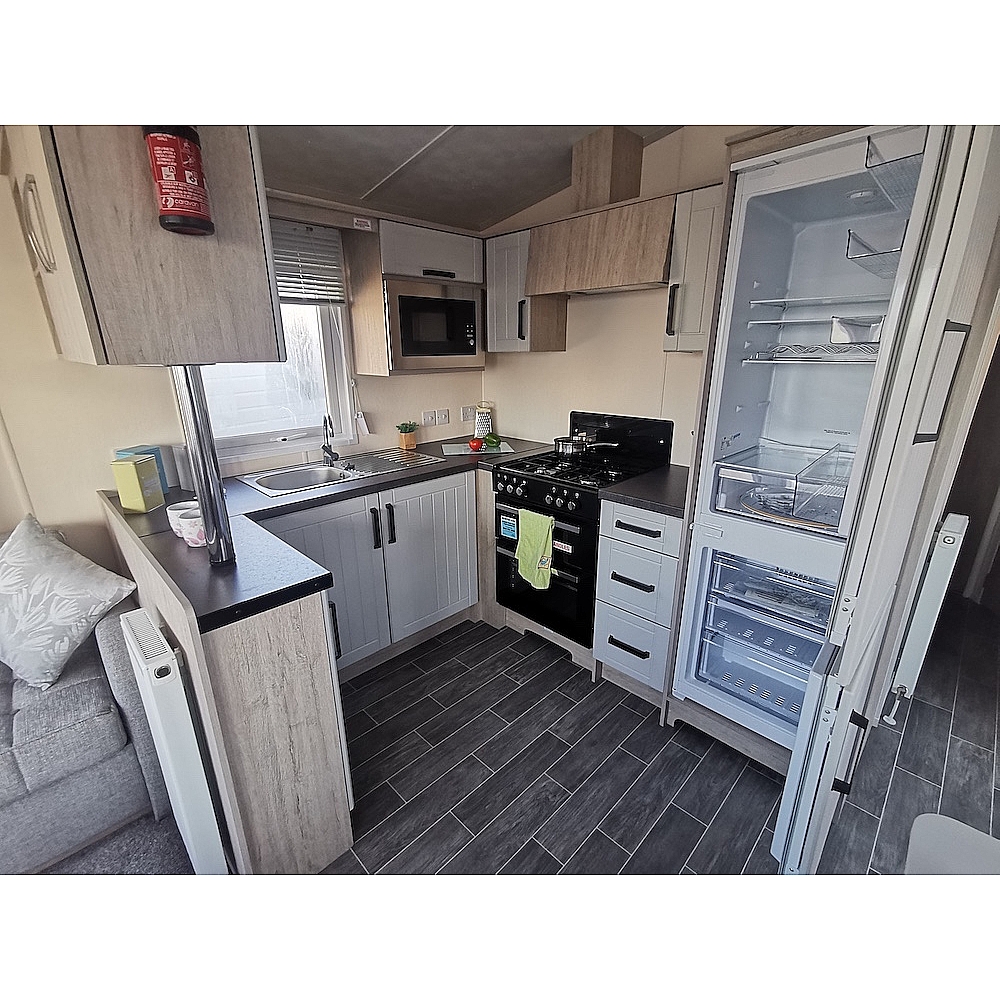 The very spacious lounge provides plenty of seating and attractive cabinet work. This particular model has a pull out bed in the lounge for those extra guests. The kitchen is well equipped with ample storage and worktop space. It has a family shower room and a good size master bedroom. The Luxihome is a comfortable, practical and affordable holiday home which must be viewed to be appreciated. This would be ideal for those wanting to up-grade to a new model, or for those wanting to purchase a holiday home for the first time at a very affordable price.