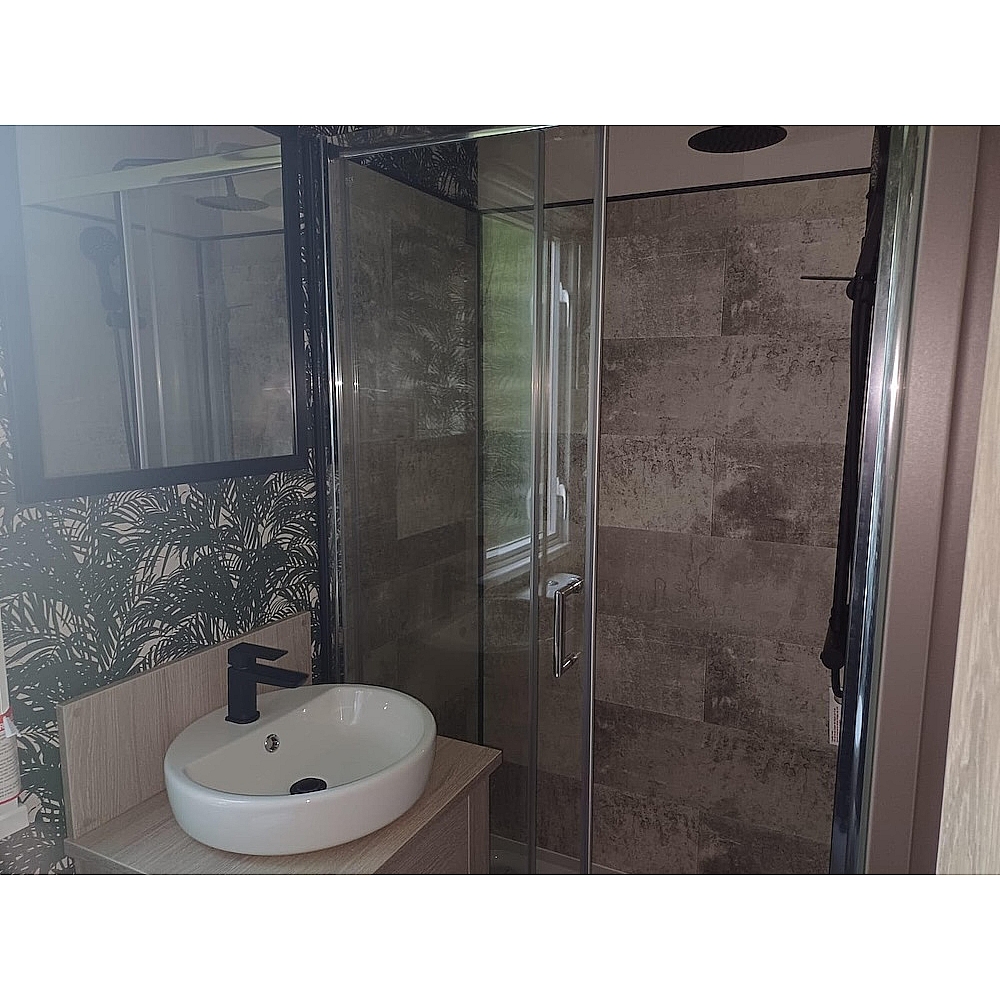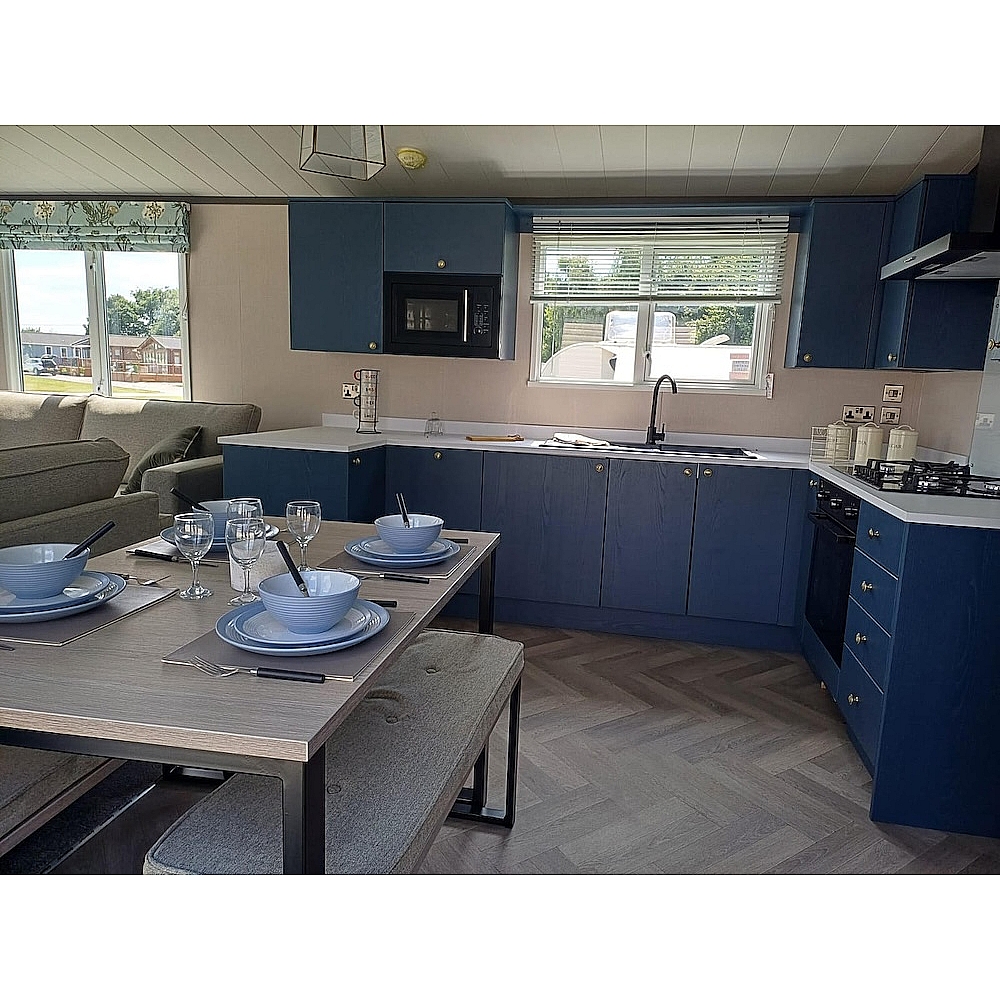 If you’re looking to holiday in style, look no further than the Riverwood Lodge. With a boutique, luxury feel, the Riverwood Lodge boasts an industrial design with statement wallpaper designs, sleek black accessories, pendant lighting and gold accent handles throughout. The master bedroom features a functional dressing closet and en-suite. Available in two or three bedroom options, there’s plenty of space for additional family members or guests. It’s time to staycation in style. This Caravan is sited at Allerthorpe Lakeland Park and comes with Decking and Skirting If you would like to view this caravan please contact the park direct on 01759 301444