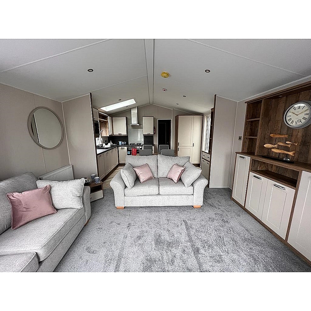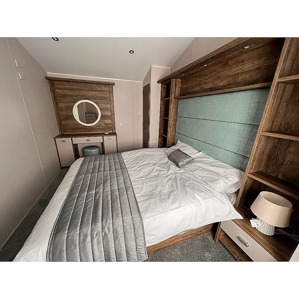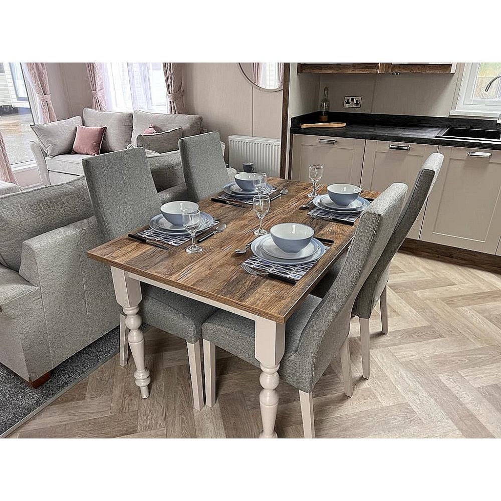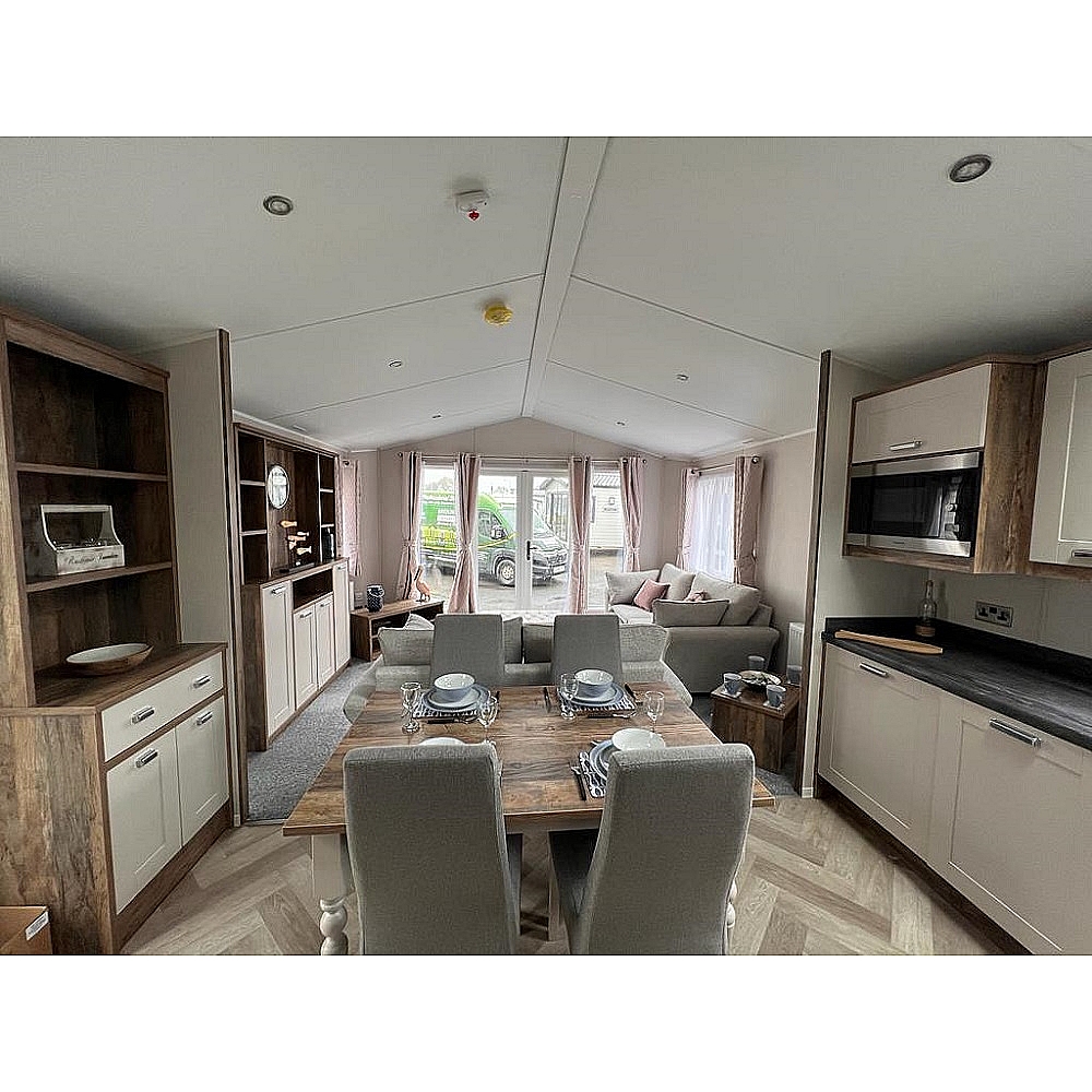 The Sheraton is a classic home that is sure to turn heads. Dark woods and soft pinks work seamlessly together to create the perfect retreat from busy modern life. One of our premium models, the Sheraton has fantastic aesthetics and is available in a range of exterior finishes. The Sheraton’s lounge area is modern, spacious and a great place to unwind with family and friends. You'll love the heritage feel with the feature dark wood effect fire and matching twin sofas of this static caravan. Need that extra space? You can super-size to our Sheraton Elite model which is an impressive 42 x 14.