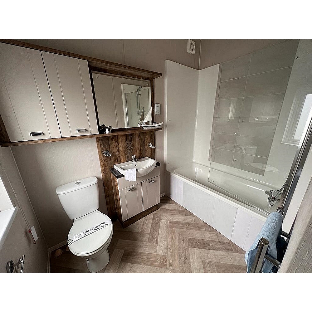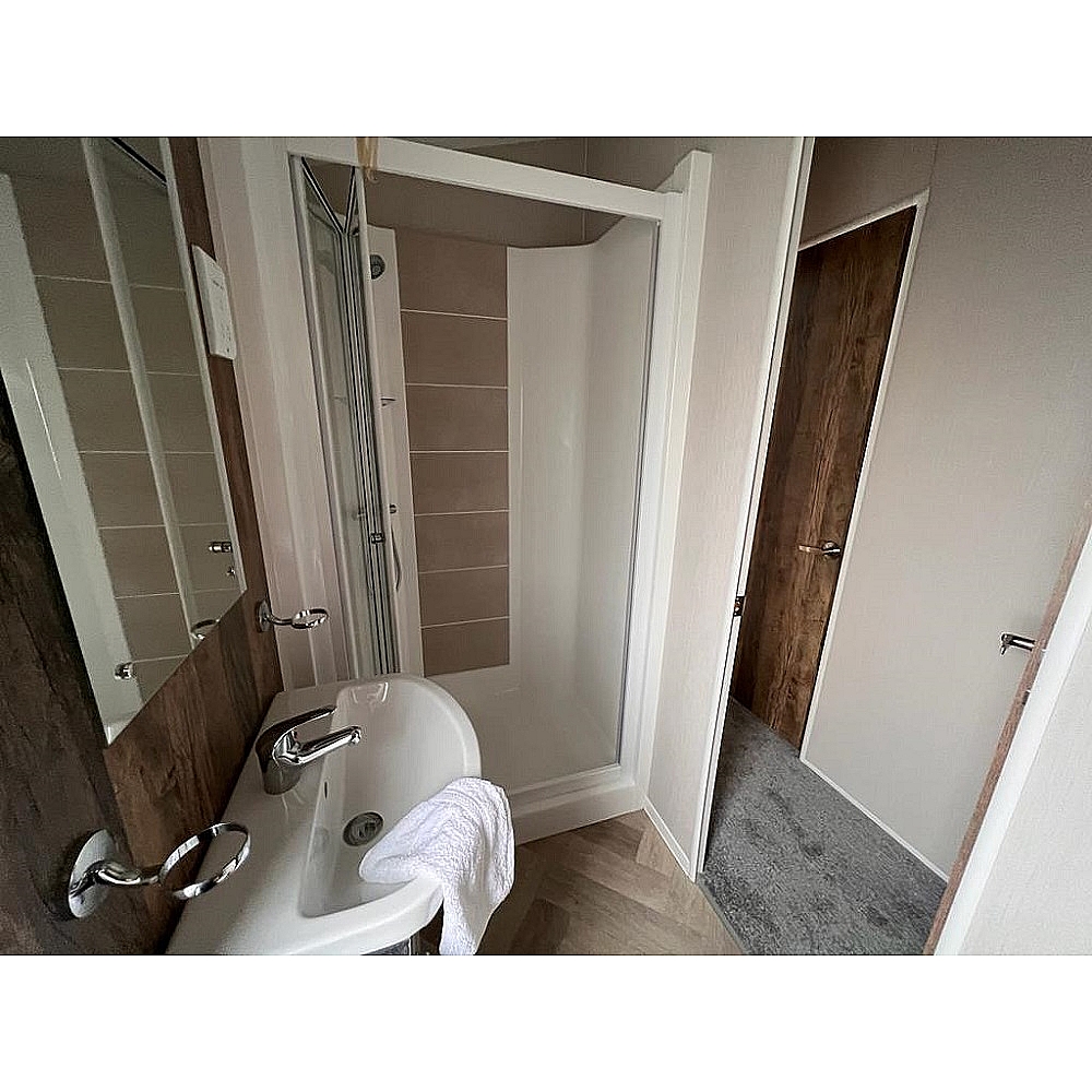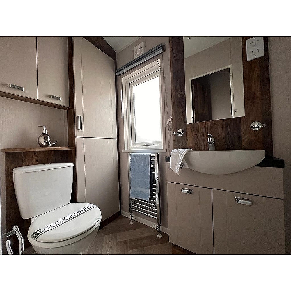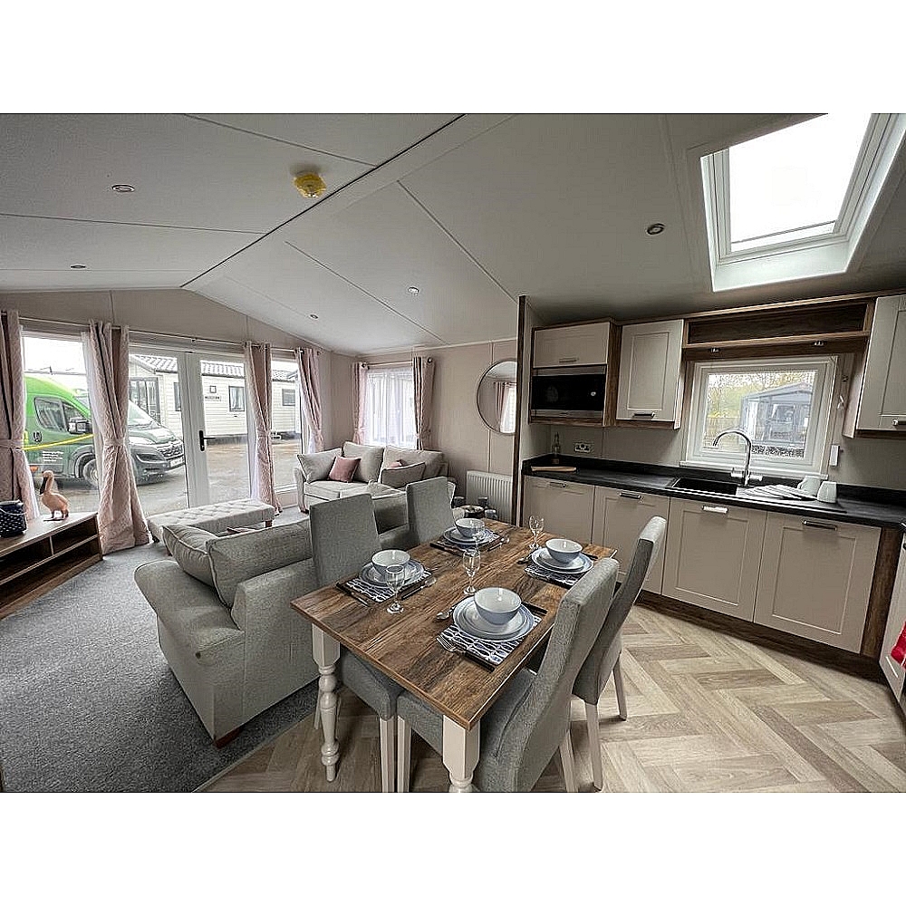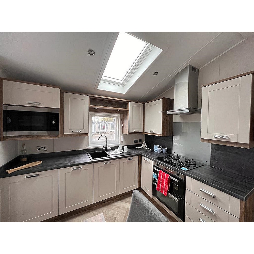 The Sheraton is a classic home that is sure to turn heads. Dark woods and soft pinks work seamlessly together to create the perfect retreat from busy modern life. One of our premium models, the Sheraton has fantastic aesthetics and is available in a range of exterior finishes. The Sheraton’s lounge area is modern, spacious and a great place to unwind with family and friends. You'll love the heritage feel with the feature dark wood effect fire and matching twin sofas of this static caravan. Need that extra space? You can super-size to our Sheraton Elite model which is an impressive 42 x 14.