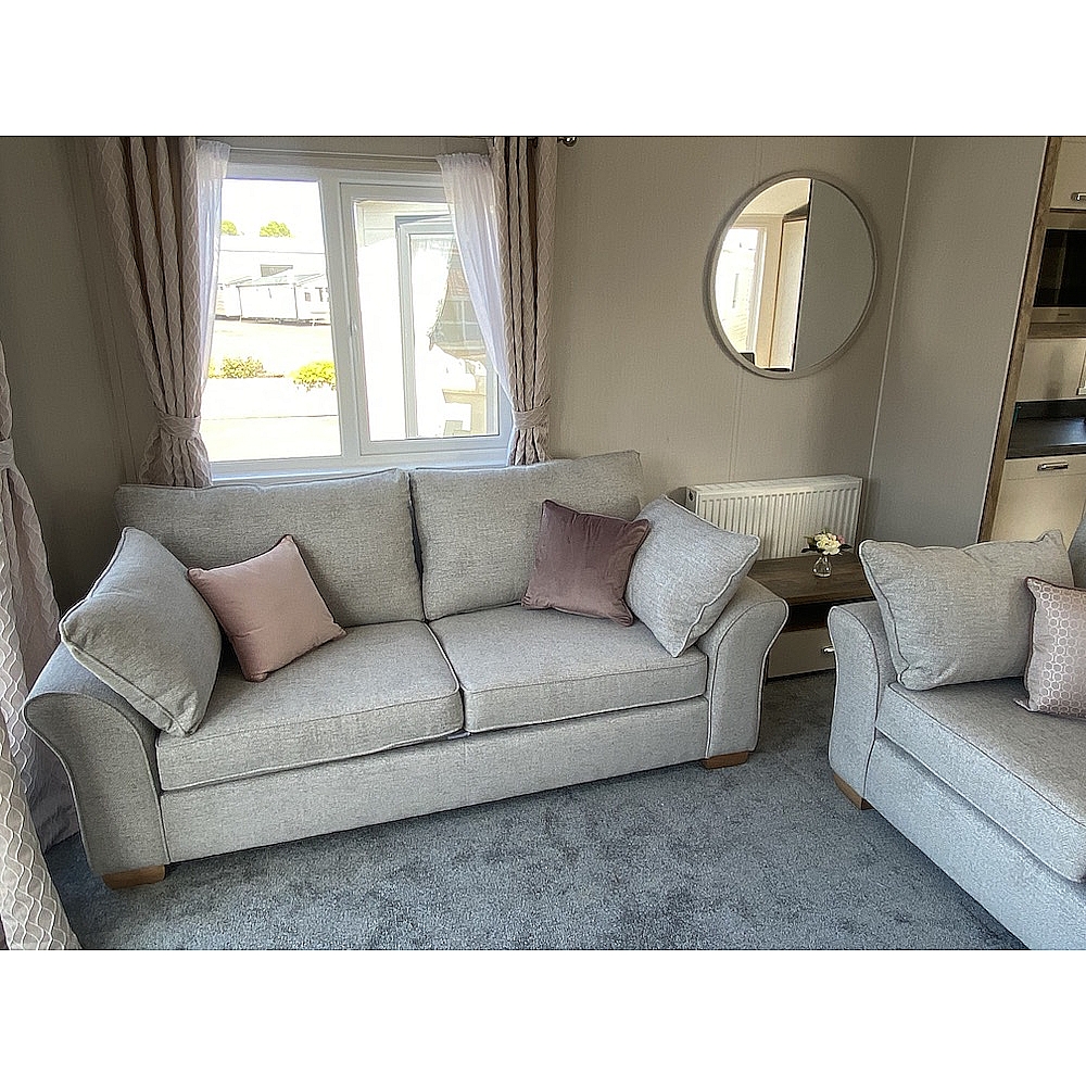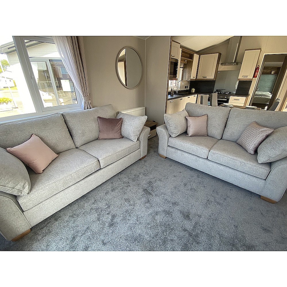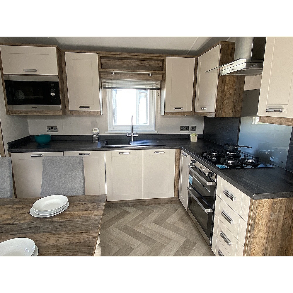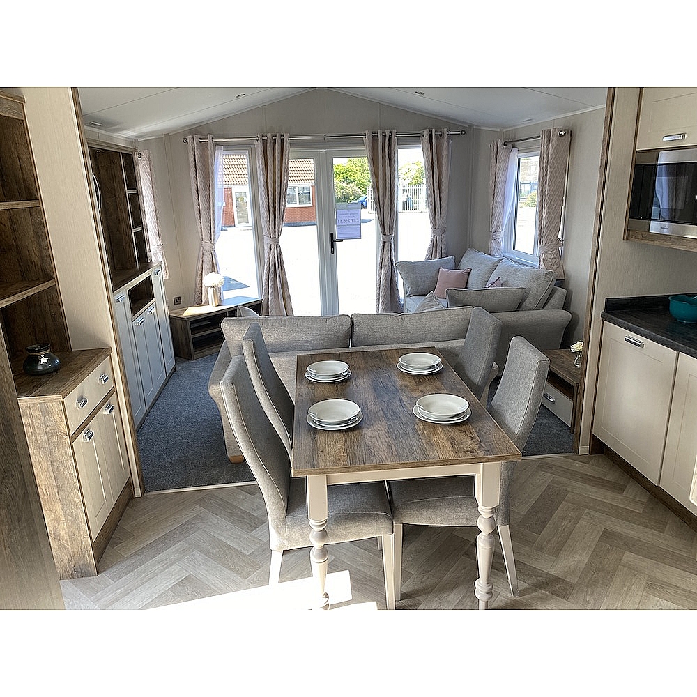 The Sheraton is a classic home that is sure to turn heads. Dark woods and soft pinks work seamlessly together to create the perfect retreat from busy modern life. One of our premium models, the Sheraton has fantastic aesthetics and is available in a range of exterior finishes. The Sheraton’s lounge area is modern, spacious and a great place to unwind with family and friends. You'll love the heritage feel with the feature dark wood effect fire and matching twin sofas of this static caravan. Need that extra space? You can super-size to our Sheraton Elite model which is an impressive 42 x 14.