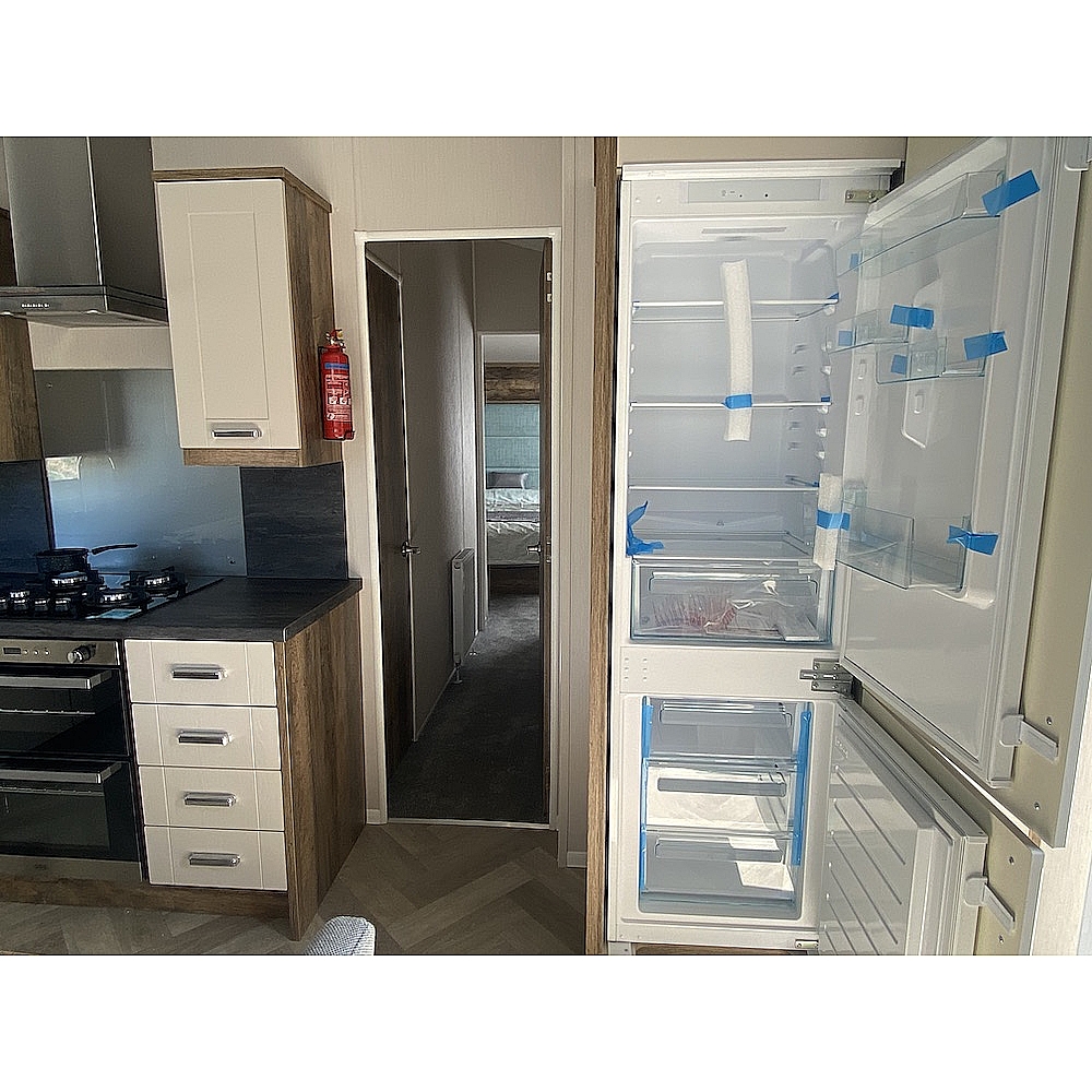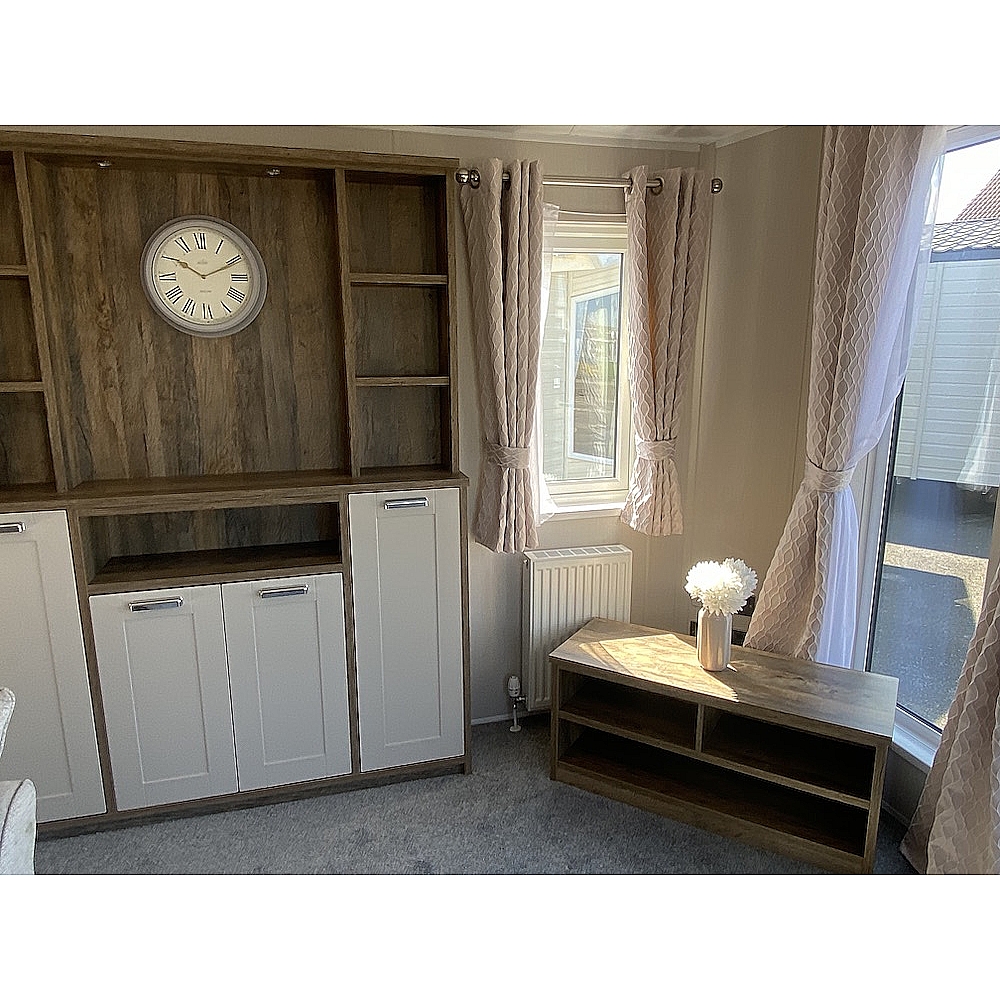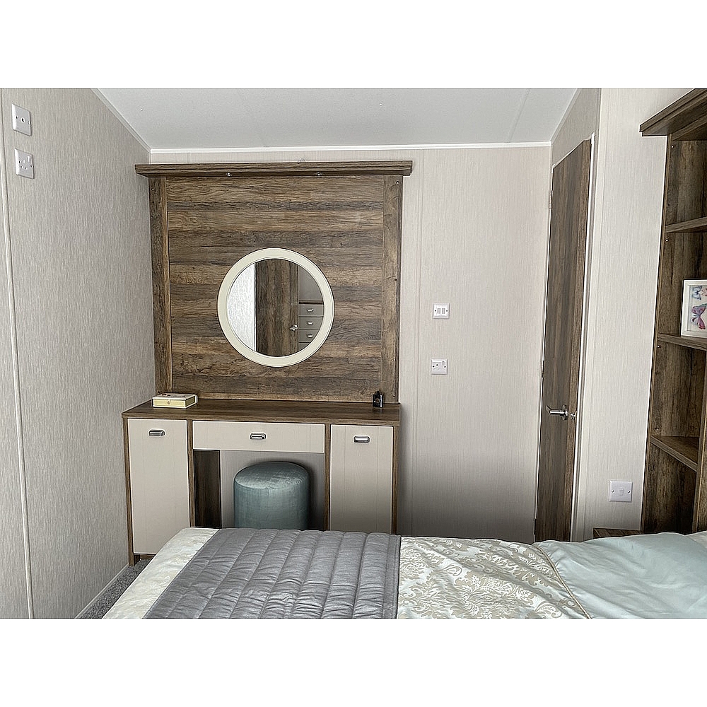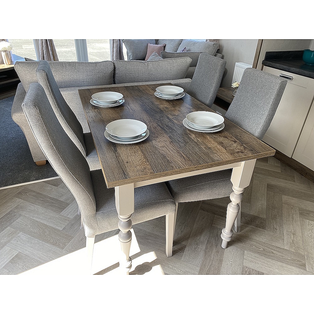 The Sheraton is a classic home that is sure to turn heads. Dark woods and soft pinks work seamlessly together to create the perfect retreat from busy modern life. One of our premium models, the Sheraton has fantastic aesthetics and is available in a range of exterior finishes. The Sheraton’s lounge area is modern, spacious and a great place to unwind with family and friends. You'll love the heritage feel with the feature dark wood effect fire and matching twin sofas of this static caravan. Need that extra space? You can super-size to our Sheraton Elite model which is an impressive 42 x 14.