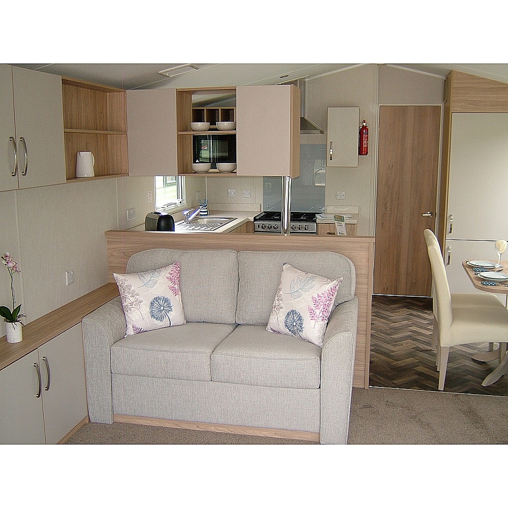 The Brockenhurst has a classic design that will feel familiar to those with fond childhood memories of holiday home adventures. Its light and contemporary touches will soon make it your home away from home. A domestic style sofa, TV storage unit, scatter cushions & coffee table are all included in your purchase to guarantee you all the amenities of home. Fully stocked, the Brockenhurst’s fitted kitchen-diner comes with integrated microwave and wine rack (for life’s essentials!) as standard.